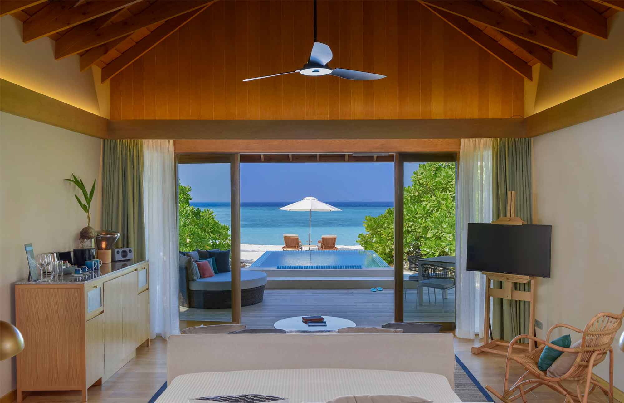 Вилла расположена на пляже, оснащена меблированной террасой, спальней кроватью размера king-size, зоной отдыха, ванной комнатой с ванной и душем на открытом воздухе. Среди удобств – мини-бар, кондиционер, телевизор, сейф, принадлежности для кофе и чая, фен, халаты, тапочки, набор гостиничной косметики.