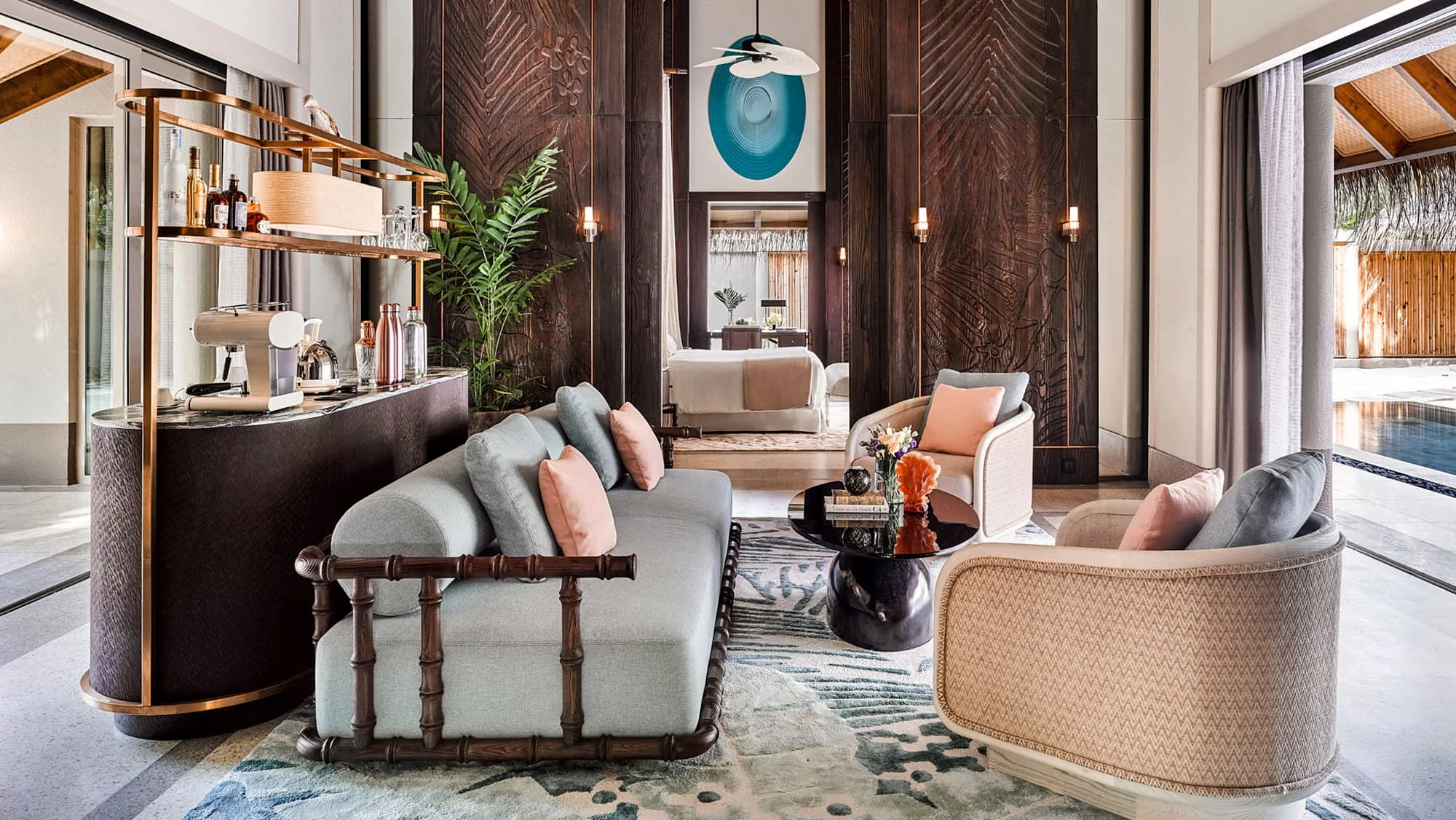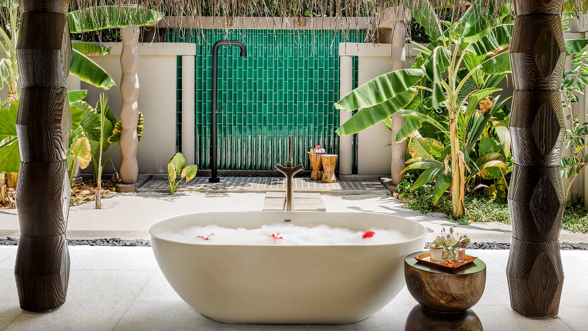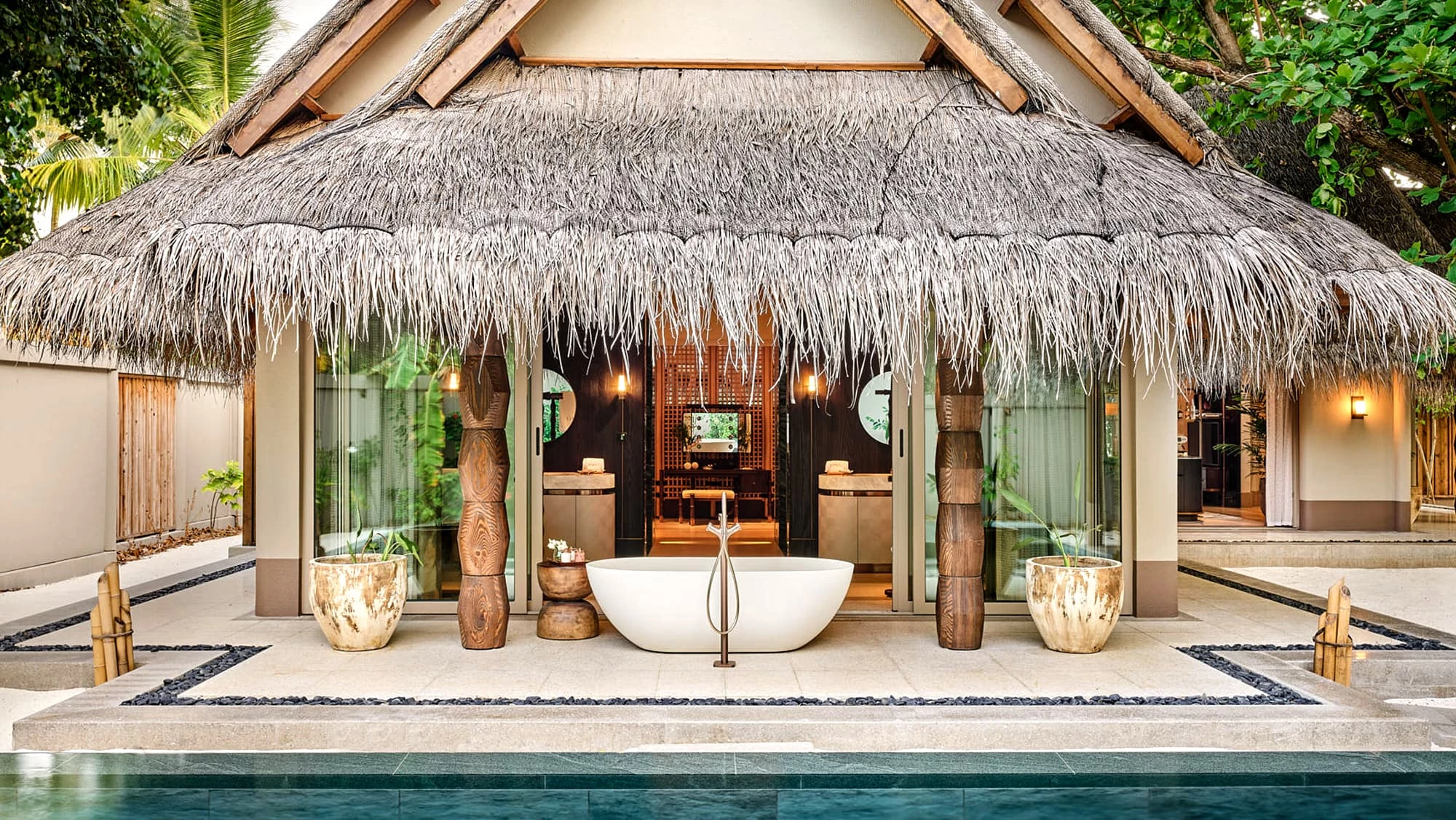 Однокомнатная вилла с двуспальной кроватью и гостиной зоной. Ванная комната оборудована ванной, феном и туалетно-косметическими принадлежностями, имеется душ на открытом воздухе. К услугам гостей терраса с бассейном, батлер, телевизор, кондиционер, чайный набор, Wi-Fi, мини-бар, сейф, телефон, музыкальная система BOSE.
