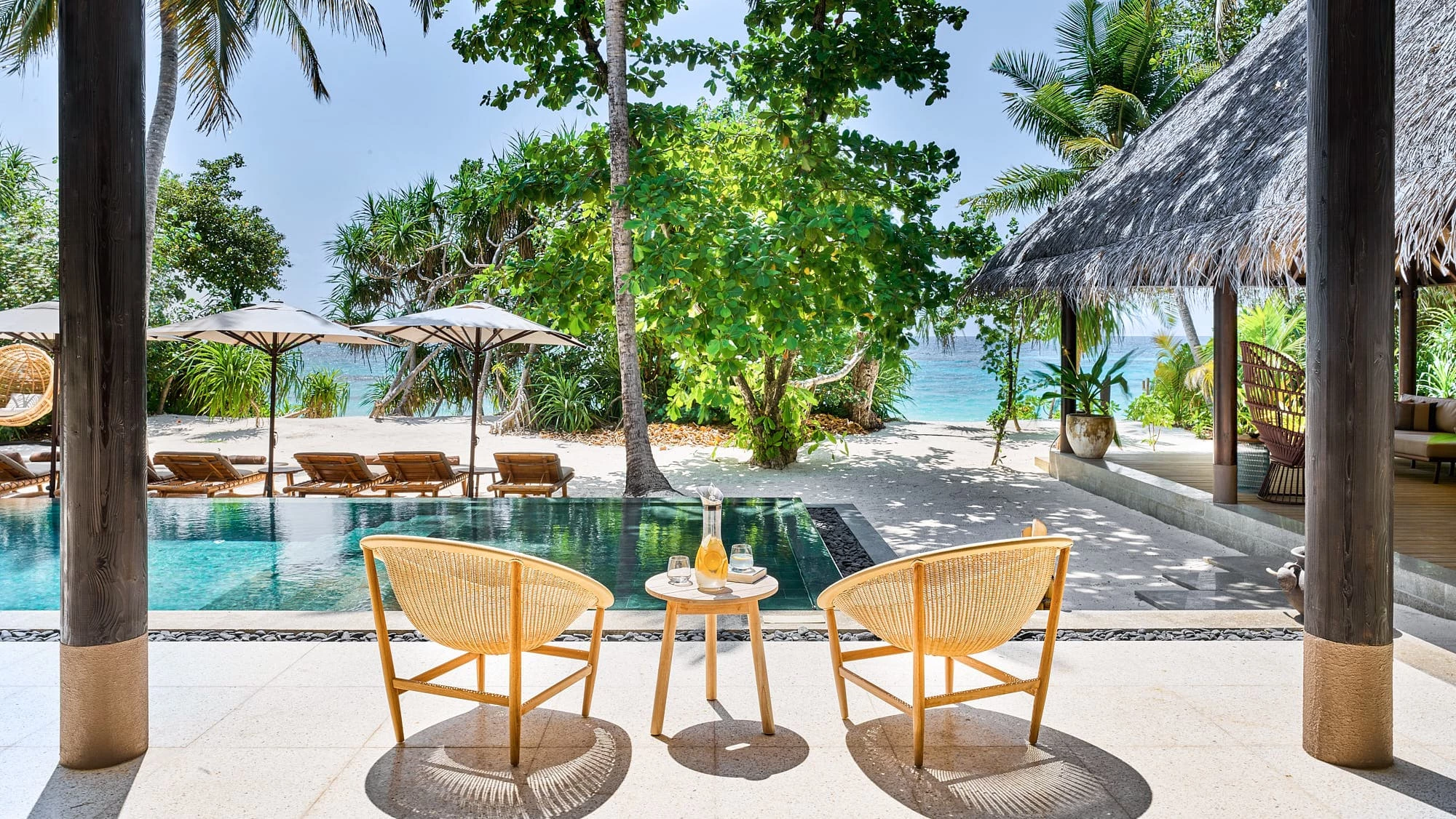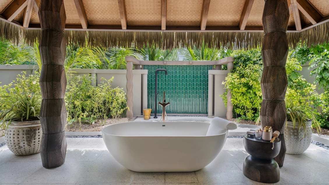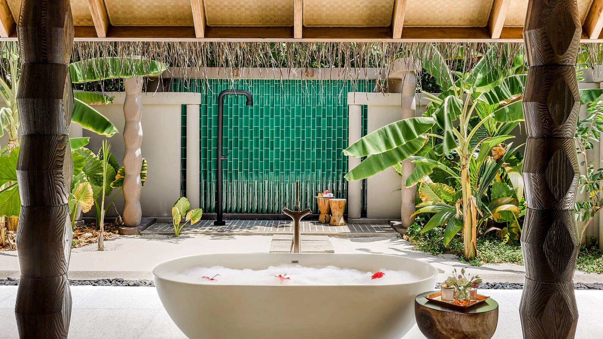 Однокомнатная вилла с двуспальной кроватью и гостиной зоной. Ванная комната оборудована ванной, феном и туалетно-косметическими принадлежностями, имеется душ на открытом воздухе. К услугам гостей терраса с бассейном, батлер, телевизор, кондиционер, чайный набор, Wi-Fi, мини-бар, сейф, телефон, музыкальная система BOSE.