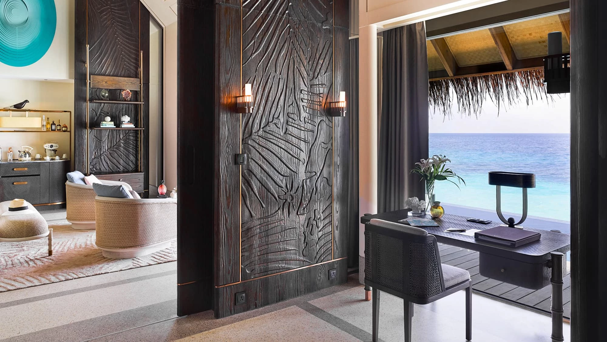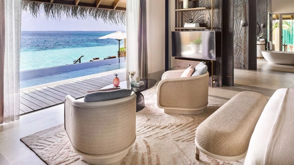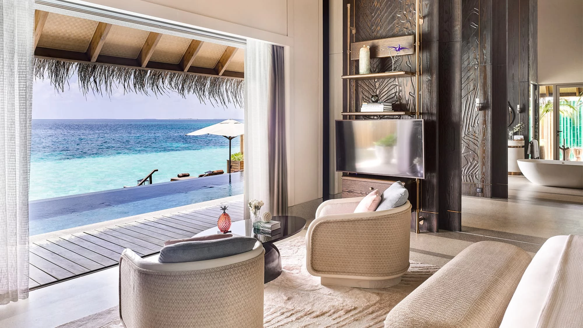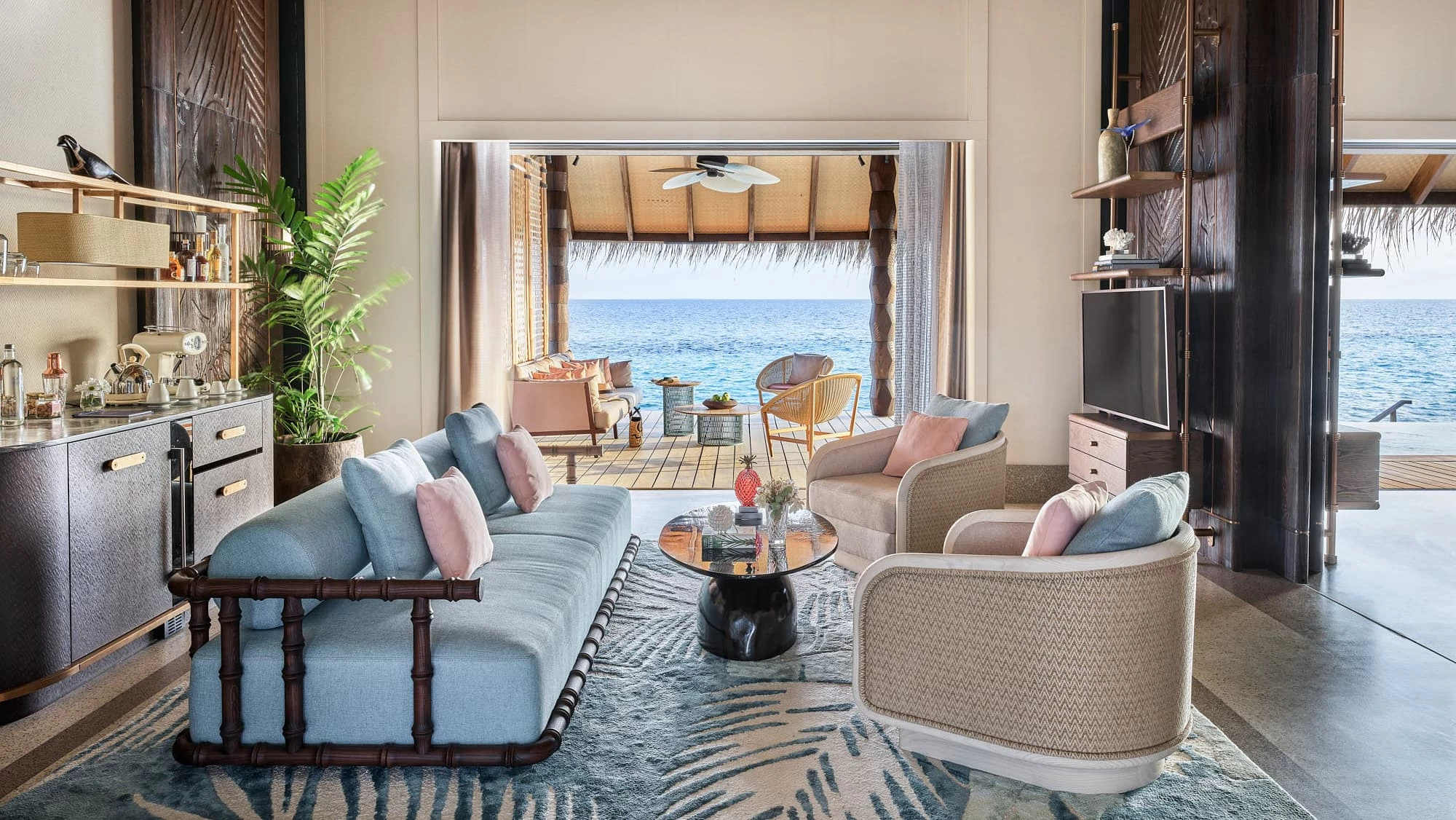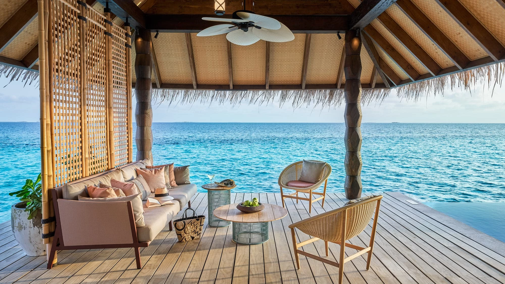 Вилла над водой оборудована террасой с бассейном, спальней с двуспальной кроватью, ванной комнатой с ванной и душем на открытом воздухе. В комплектации телевизор, кондиционер, набор для приготовления чая и кофе, мини-бар, сейф, телефон, фен. Имеется прямой спуск в воду. В числе прочих удобств беспроводной Интернет и услуги балтера.