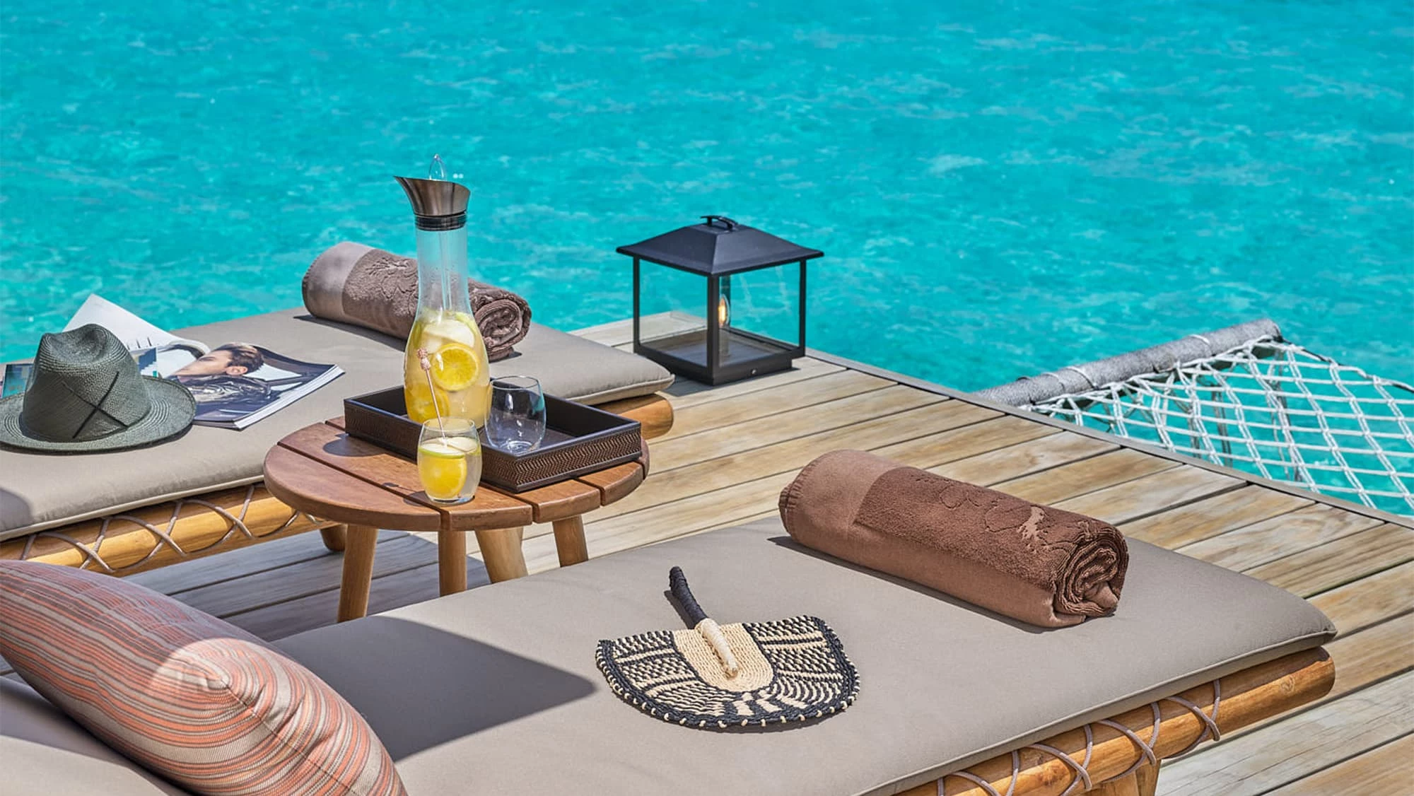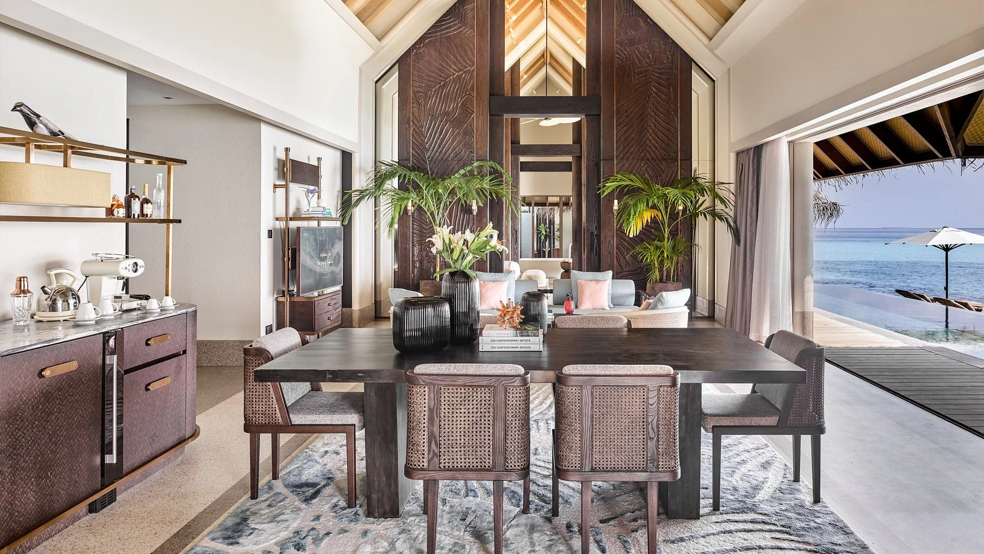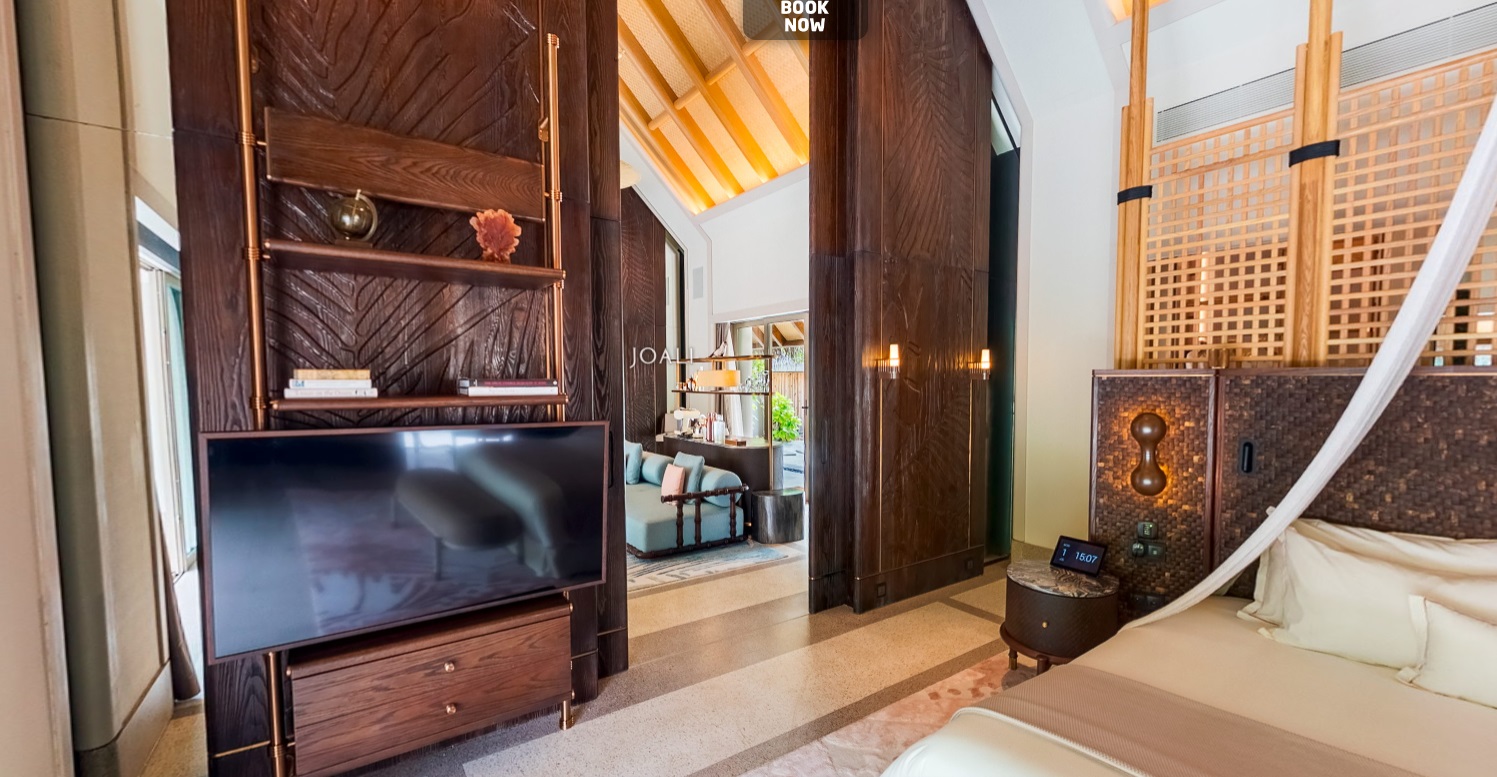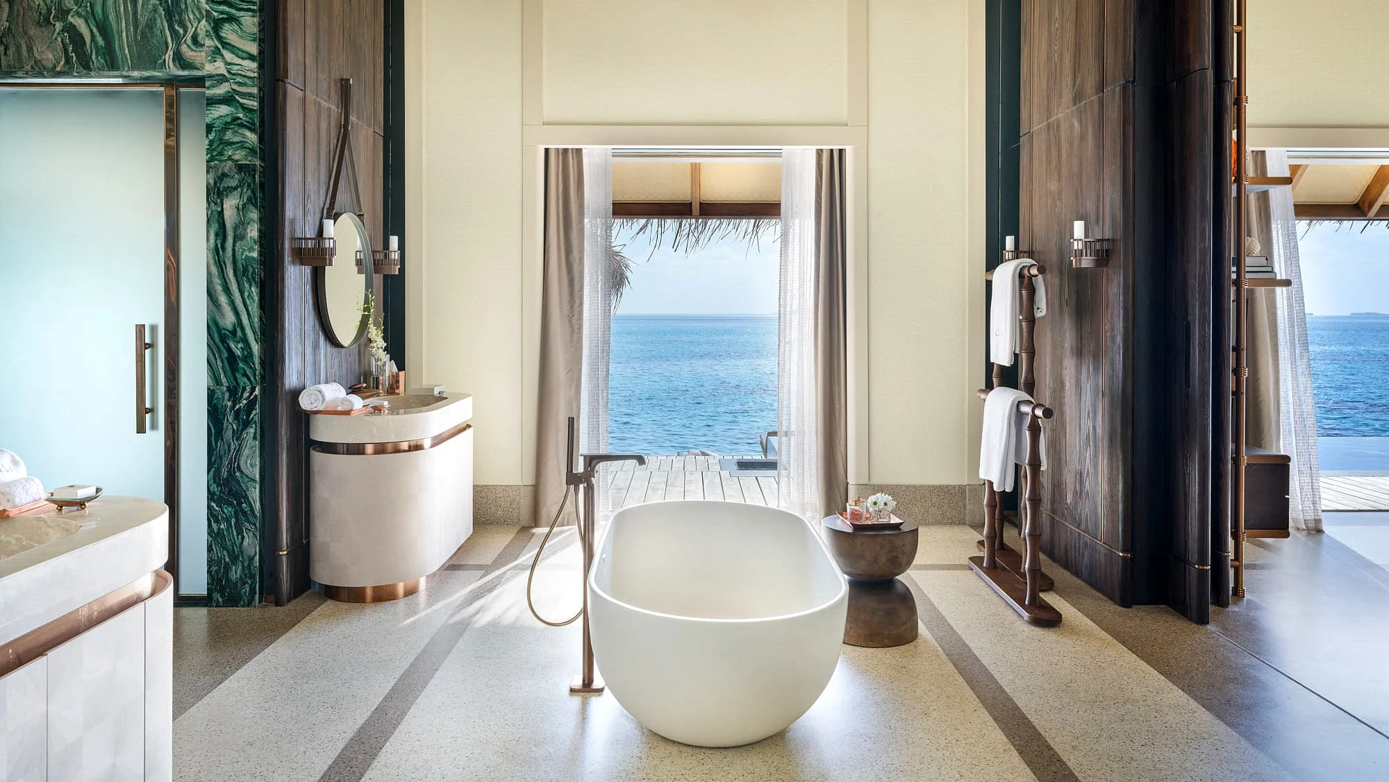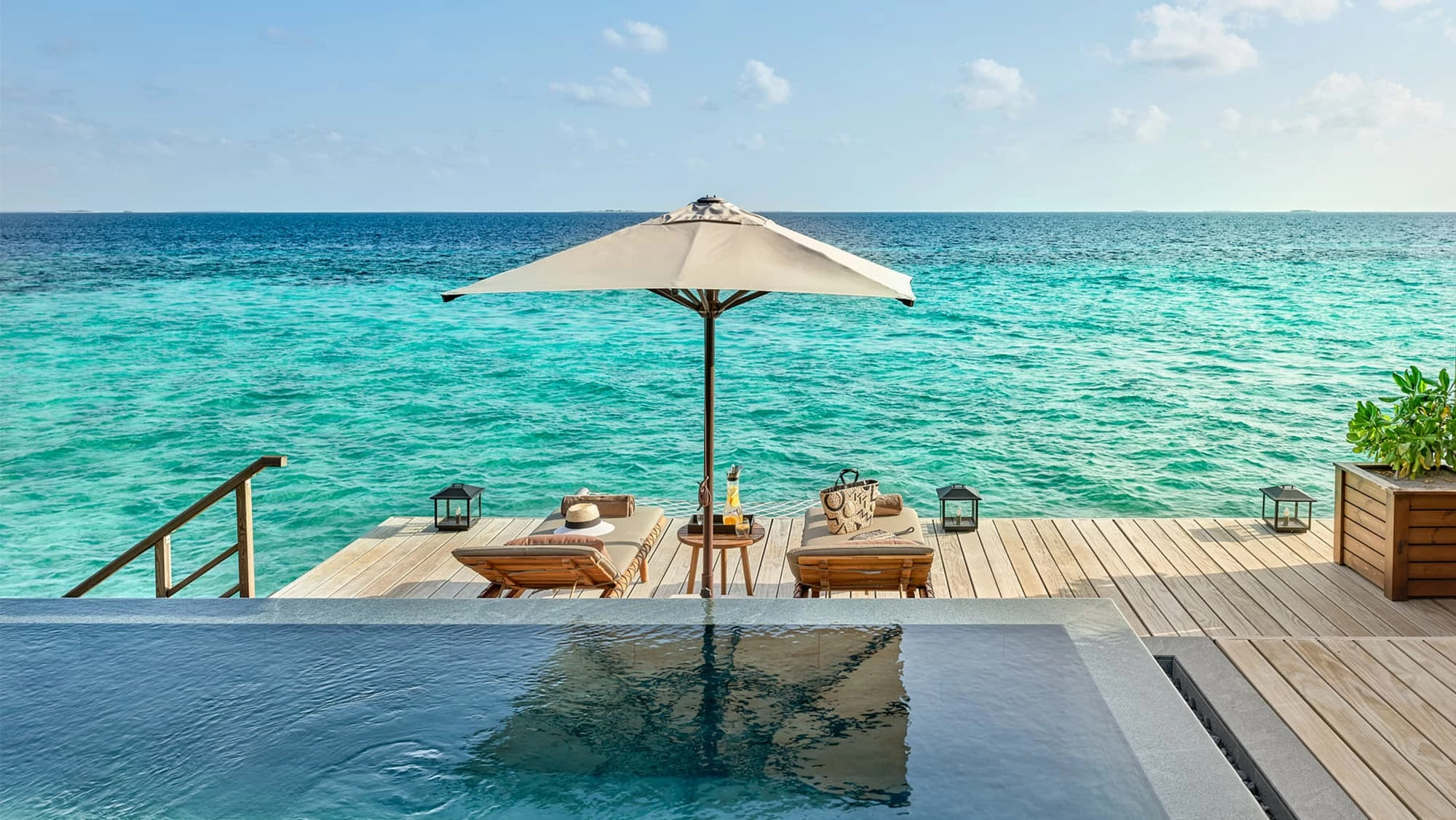 Вилла над водой оборудована террасой с бассейном, спальней с двуспальной кроватью, ванной комнатой с ванной и душем на открытом воздухе. В комплектации телевизор, кондиционер, набор для приготовления чая и кофе, мини-бар, сейф, телефон, фен. Имеется прямой спуск в воду. В числе прочих удобств беспроводной Интернет и услуги балтера.