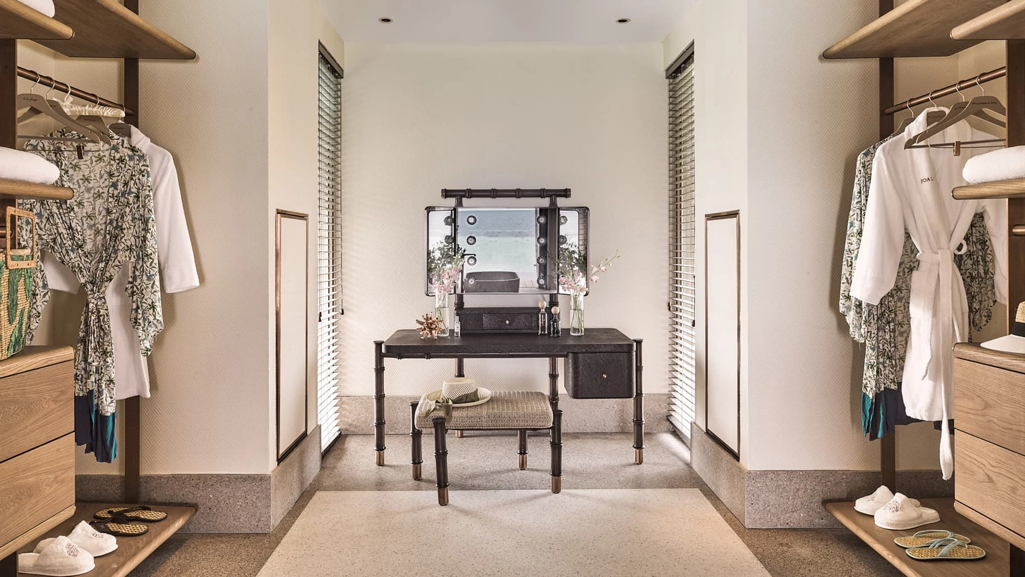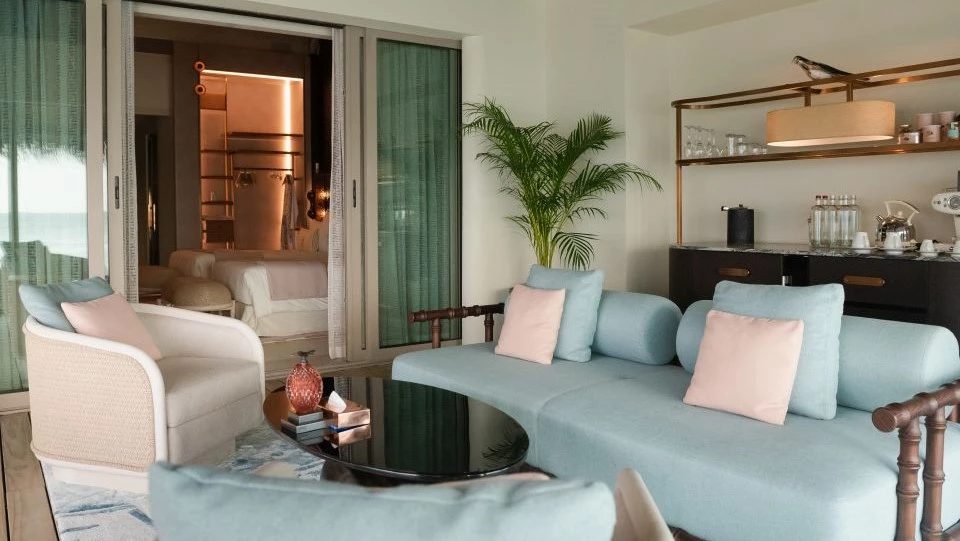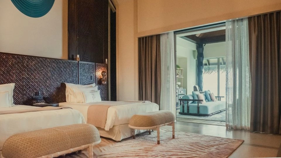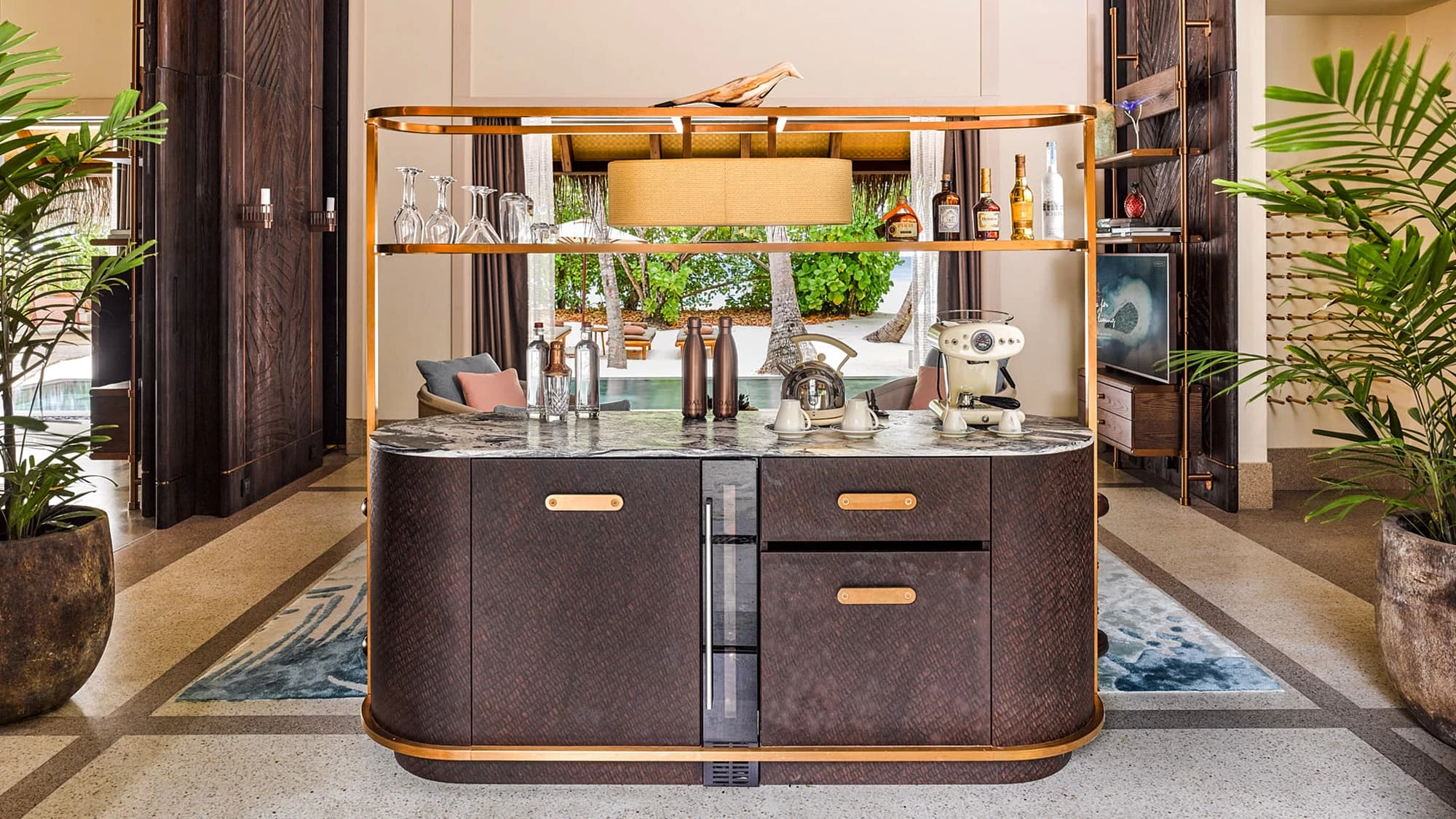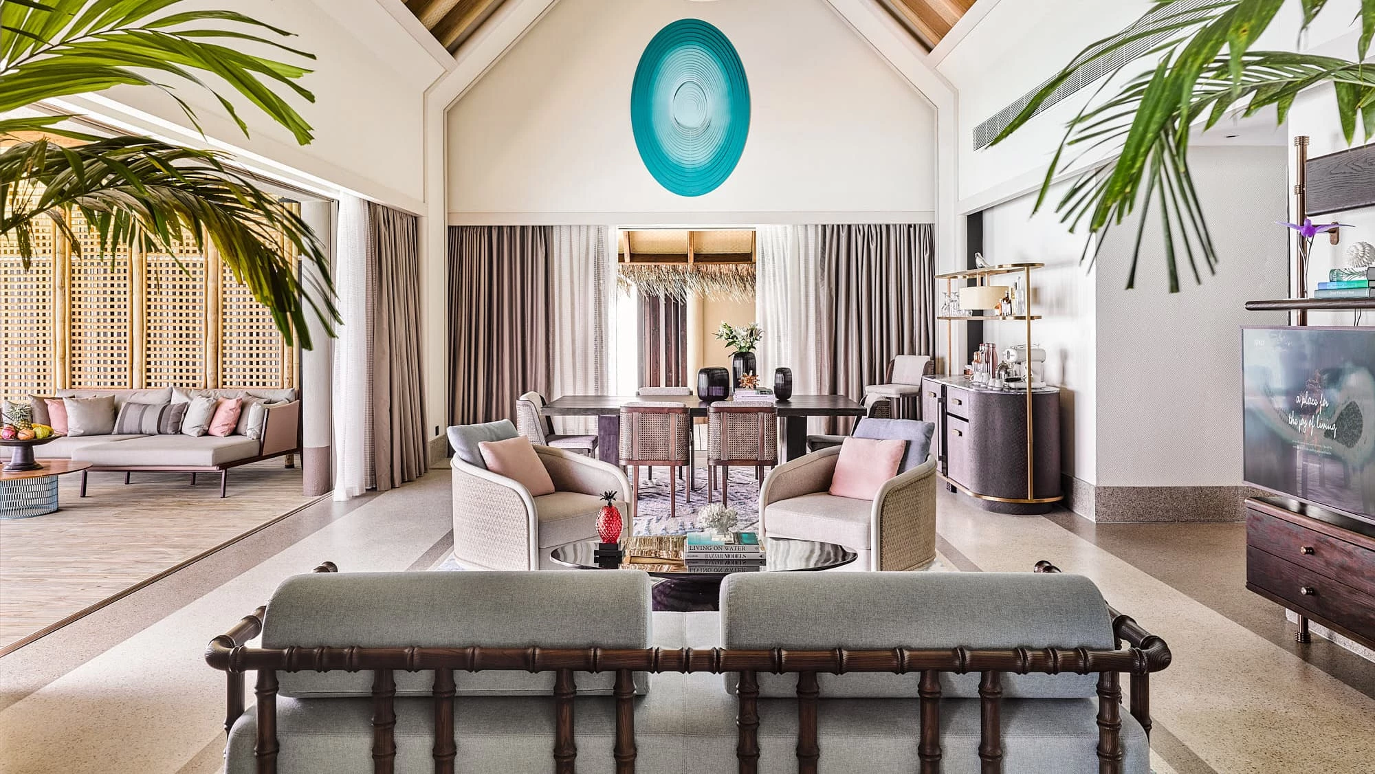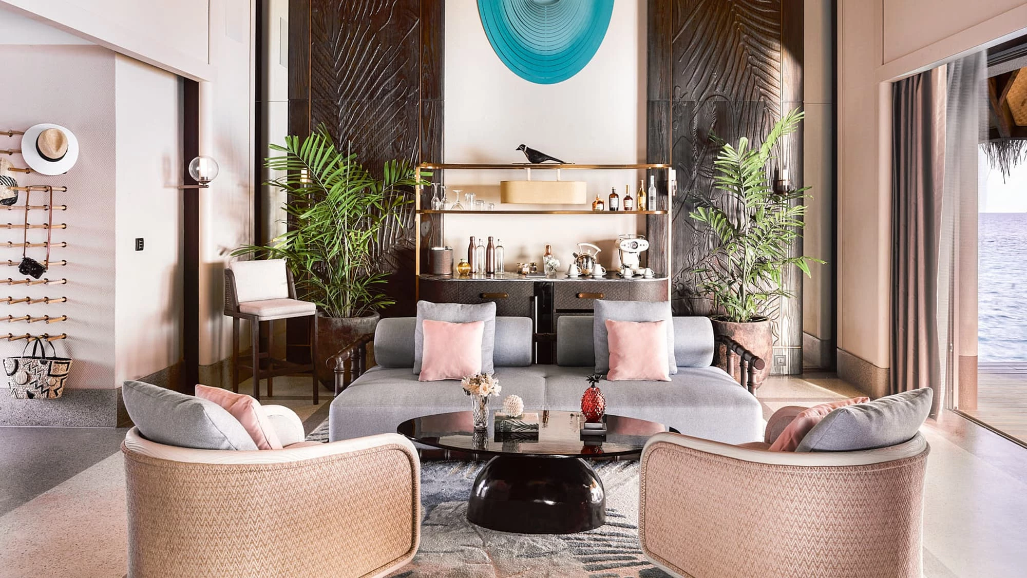 Вилла над водой оборудована террасой с бассейном, спальней с двуспальной кроватью, ванной комнатой с ванной и душем на открытом воздухе. В комплектации телевизор, кондиционер, набор для приготовления чая и кофе, мини-бар, сейф, телефон, фен. Имеется прямой спуск в воду. В числе прочих удобств беспроводной Интернет и услуги балтера.