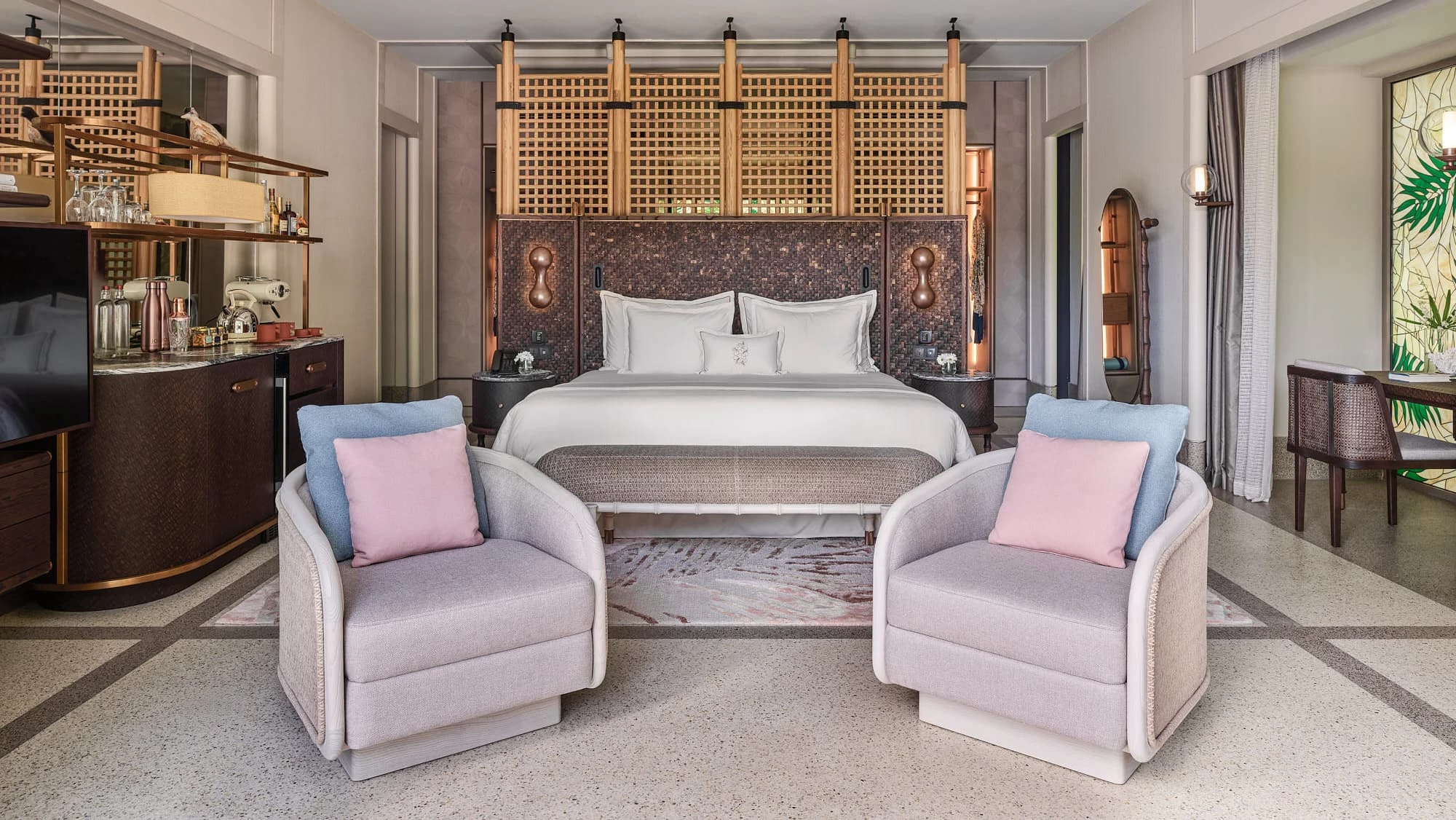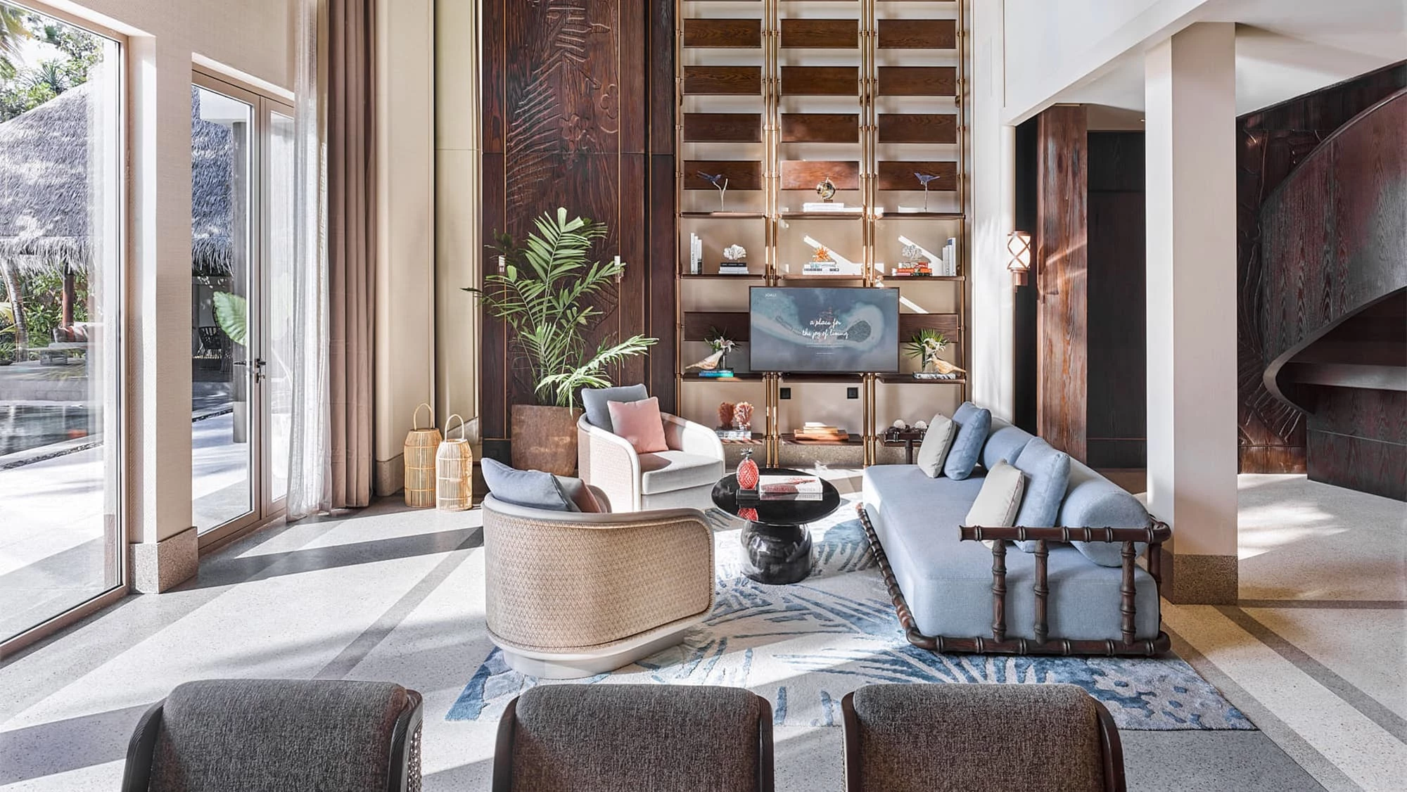 Вилла с одной спальней, отдельной гостиной, бассейном и частной библиотекой. Для размещения предлагается двуспальная кровать. В числе удобств ванна, душ на открытом воздухе, телевизор, кондиционер, чайный набор, беспроводной Интернет, мини-бар, сейф, телефон, фен, гипоаллергенные подушки.