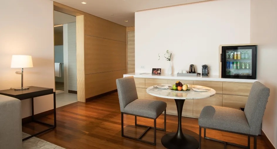 Однокомнатный номер укомплектован двуспальной кроватью или двумя односпальными кроватями, ванная комната с душем, туалетно-косметическими принадлежностями. В числе удобств Wi-Fi, кондиционер, телевизор, сейф, мини-бар, кофемашина, чайные принадлежности.