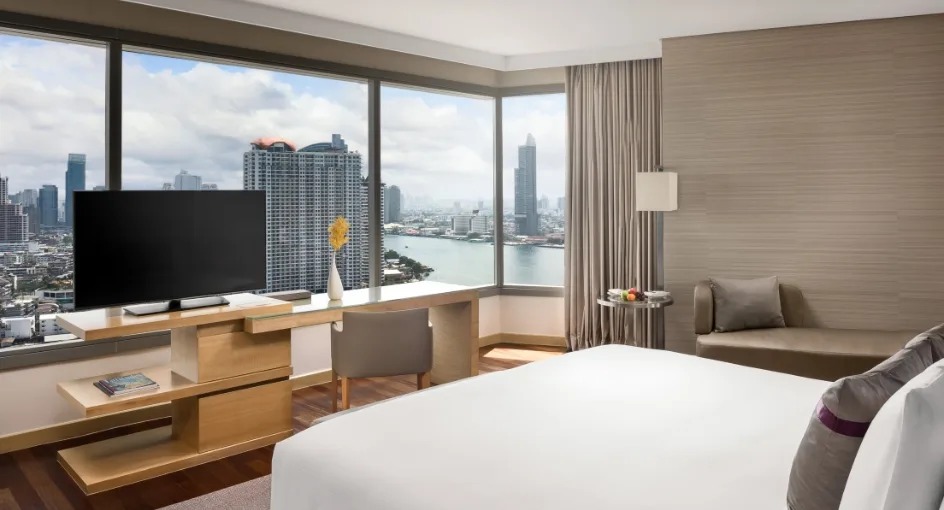 Комфортабельный номер расположен на верхнем этаже отеля. В комплектации одна двуспальная или две односпальные кровати, беспроводной интернет, кондиционер, телевизор, сейф, мини-бар, набор для приготовления чая и кофе. Ванная комната с душем и гигиеническими принадлежностями, халатами. Из номера открывается панорамный вид на реку.