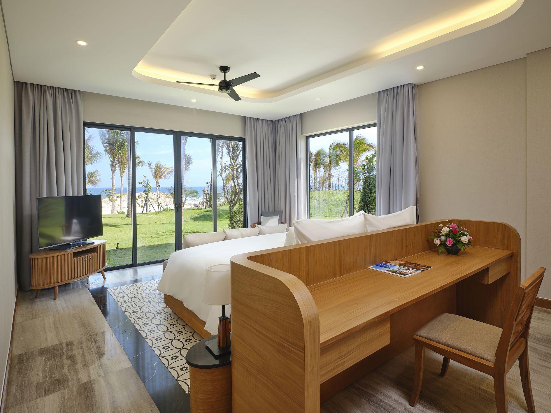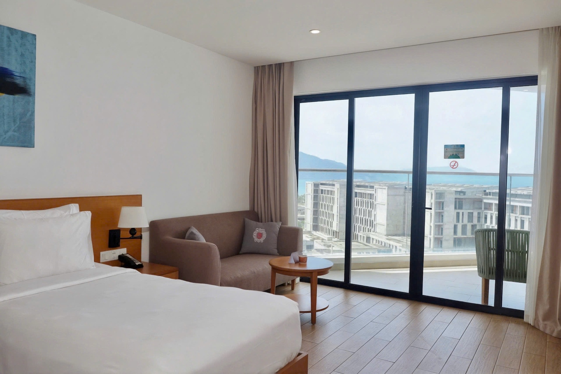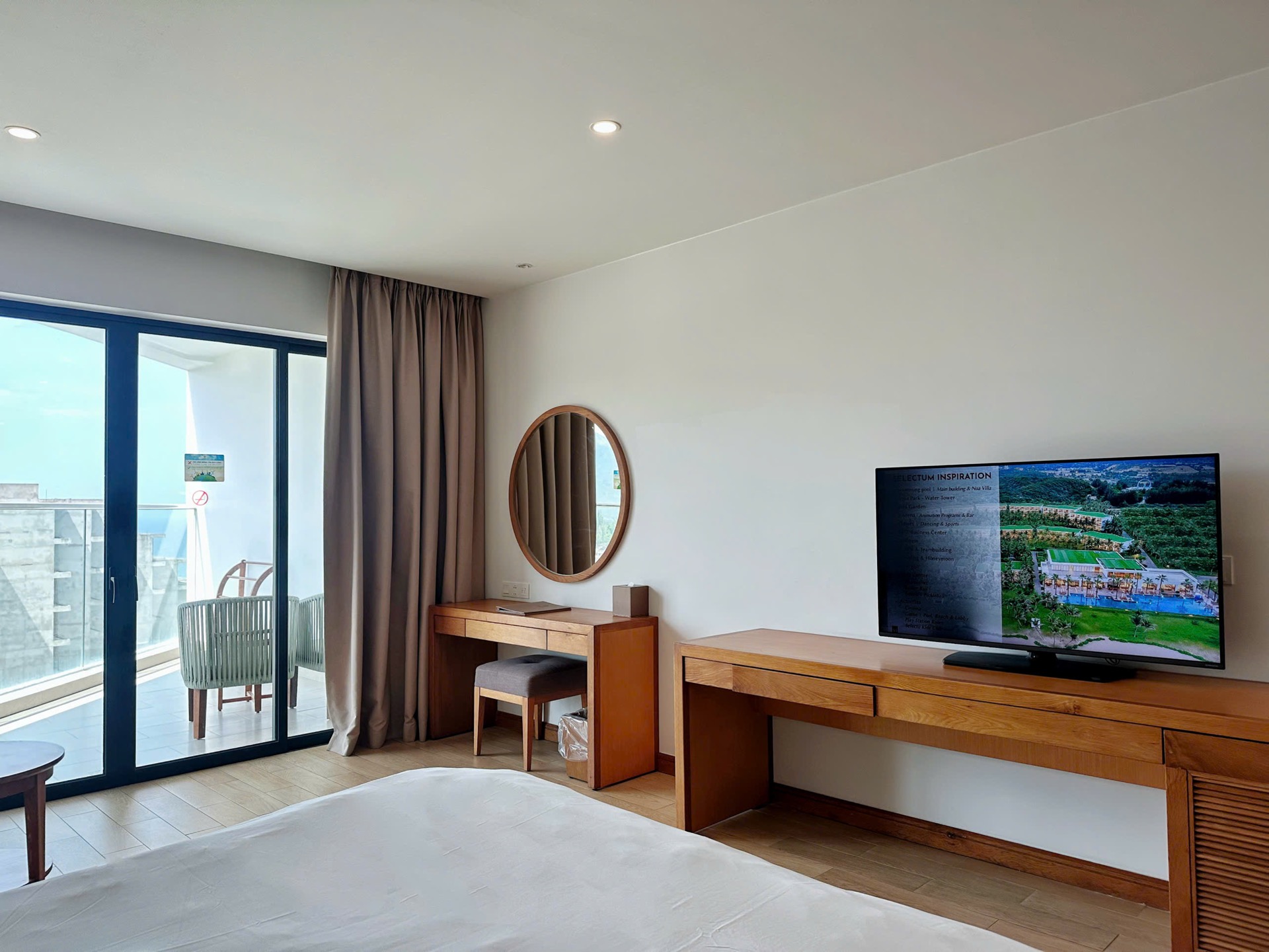 На входе встретили проводили в лаундж зону, где сидит менеджер Виктор (он не русский, вьетнамец, но говорит грамотно, без акцента даже), честно не очень приятный человек, хотя является лицом отеля. Первое впечатление сразу так себе. Ни улыбки, ни доброго слова, никаких эмоций. Как будто пришли к нему домой без приглашения. Взял документы, начал оформлять. Я в положении, с нами еще маленький ребенок, уставшие после ночного перелета, попросила возможно ли что заселят пораньше, ответил коротко: как повезет.