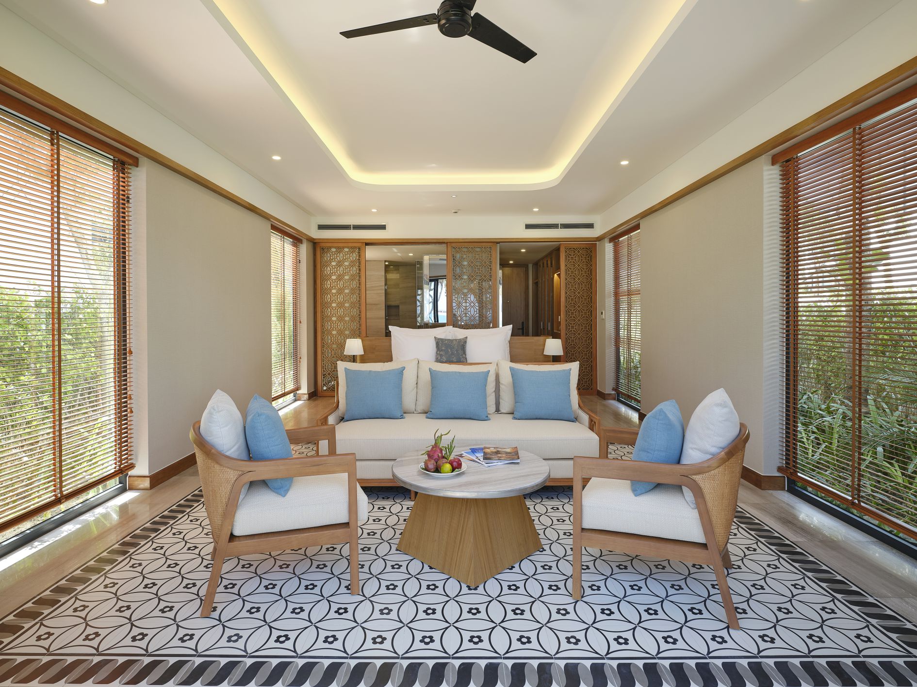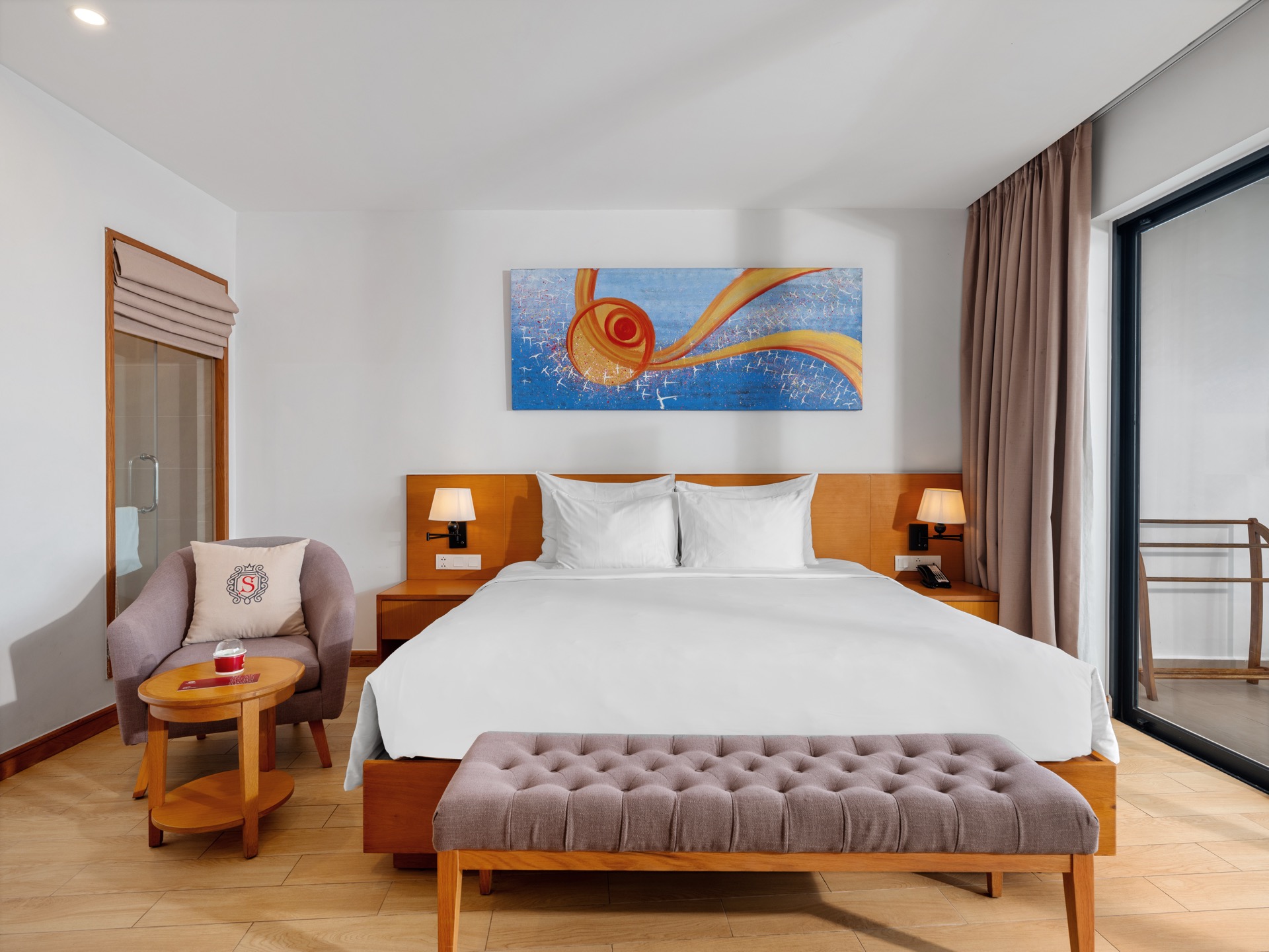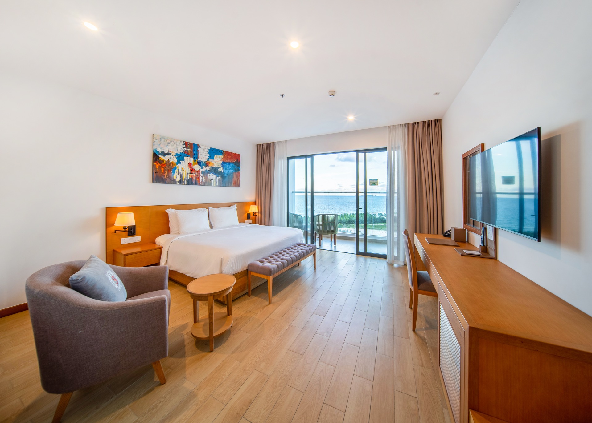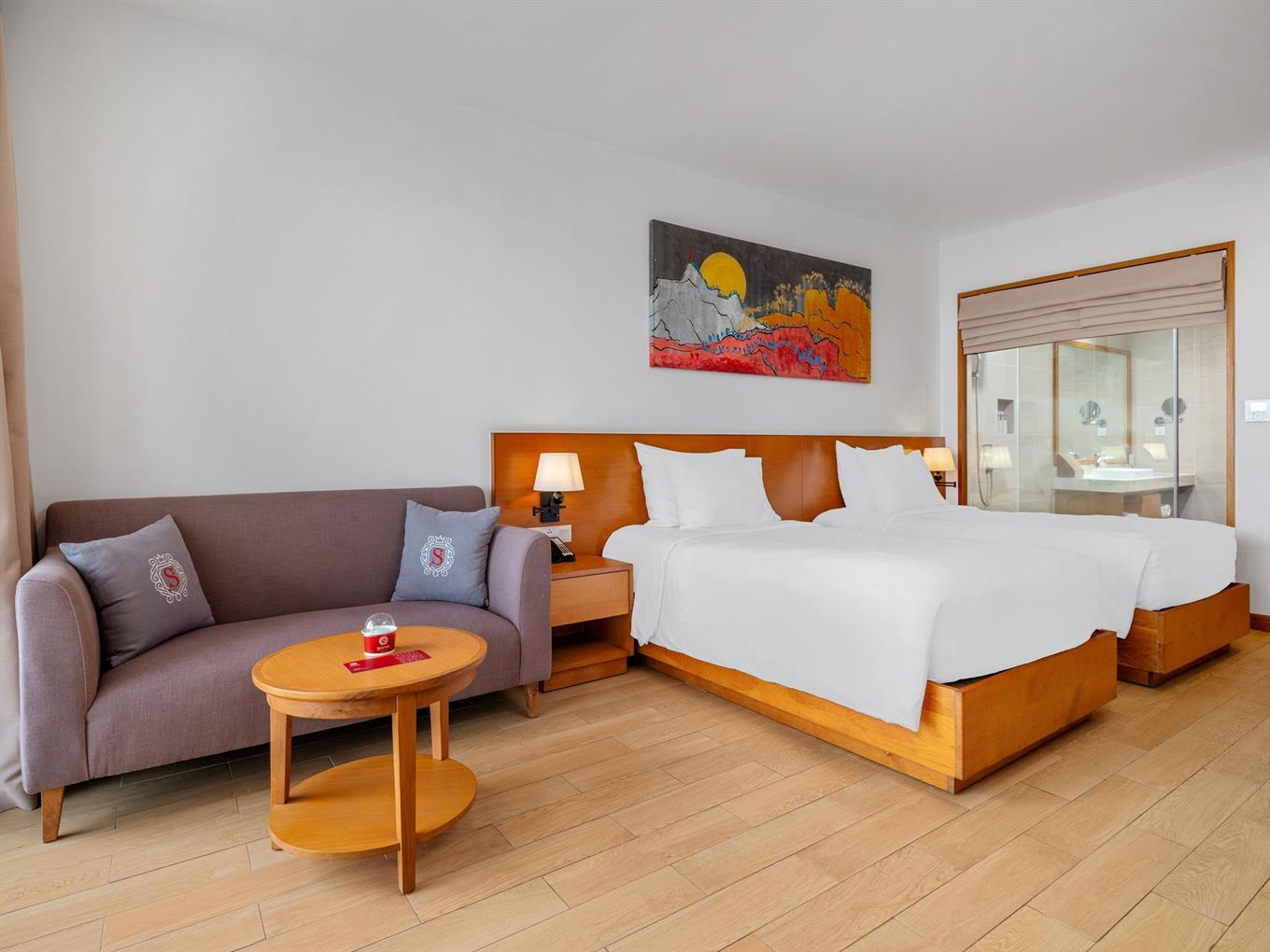 На входе встретили проводили в лаундж зону, где сидит менеджер Виктор (он не русский, вьетнамец, но говорит грамотно, без акцента даже), честно не очень приятный человек, хотя является лицом отеля. Первое впечатление сразу так себе. Ни улыбки, ни доброго слова, никаких эмоций. Как будто пришли к нему домой без приглашения. Взял документы, начал оформлять. Я в положении, с нами еще маленький ребенок, уставшие после ночного перелета, попросила возможно ли что заселят пораньше, ответил коротко: как повезет.